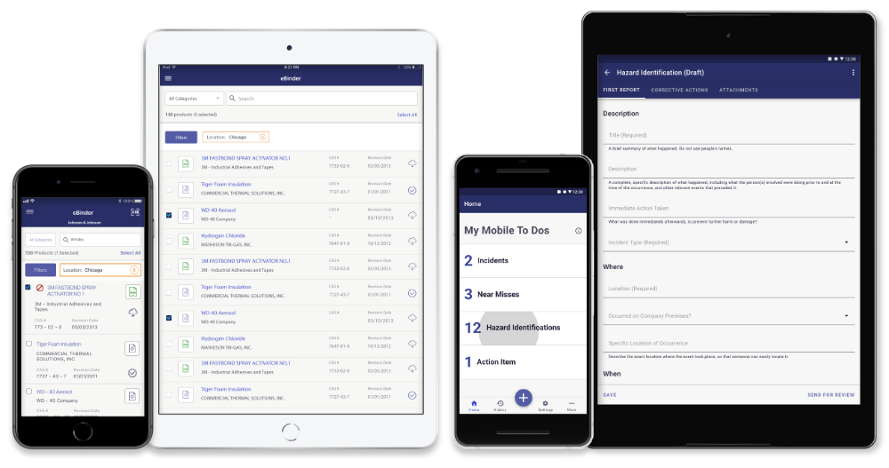 These were two projects for creating native iOS and Android applications (for phones and tablets) that had features to supplement the SDS/Chemical Management and EHS Safety products. The applications would need to feel like similar experiences amongst themselves but also among their respective web-based versions.